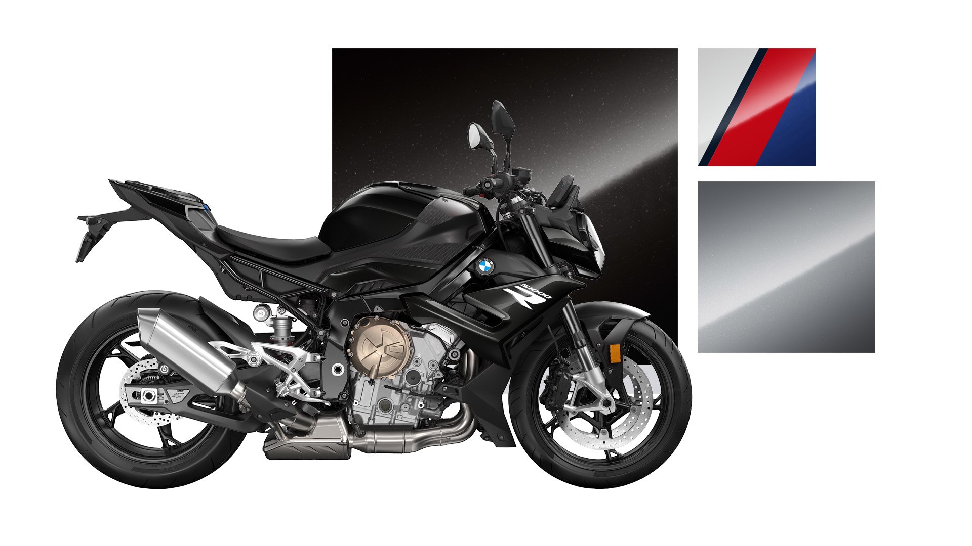 As duas novas cores, preto "storm" metalizado e azul "stone" metalizado, acentuam claramente a dinâmica e o domínio da S 1000 R. Com esta escolha de cores, tornas tudo logo mais claro: queres liderar, e menos do que isso não serve.