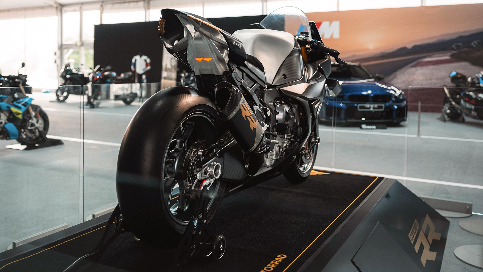 Outro destaque foi a apresentação da Concept RR, que foi conduzida até à tenda de produtos pelo próprio CEO da BMW Motorrad, Markus Flasch. A moto combina o puro espírito da competição com a mais moderna tecnologia e mais de 230 cv – inspirada na M 1000 RR, que já deu provas das suas capacidades no Campeonato do Mundo de Superbike. As asas aerodinâmicas, o sistema eletrónico de alta tecnologia e as linhas agressivas não deixam dúvidas: o futuro das superbikes BMW será incondicionalmente dinâmico, potente e visionário.