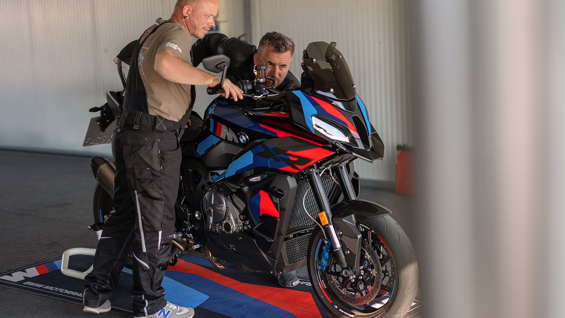 Tudo pronto? Senta-te, liga o motor e mergulha no mundo M. Atrás de ti está a elegante traseira, concebida para oferecer as máximas prestações com um suporte da placa da matrícula mais curto. É a partir deste momento que deixas tudo para trás. Tu lideras. Ouves o som incomparável proveniente do silenciador Akrapovič montado em posição inclinada. O passageiro também desfruta da experiência M completa graças ao contorno do banco do passageiro, às pegas esguias e ao suporte do pousa-pés do passageiro.